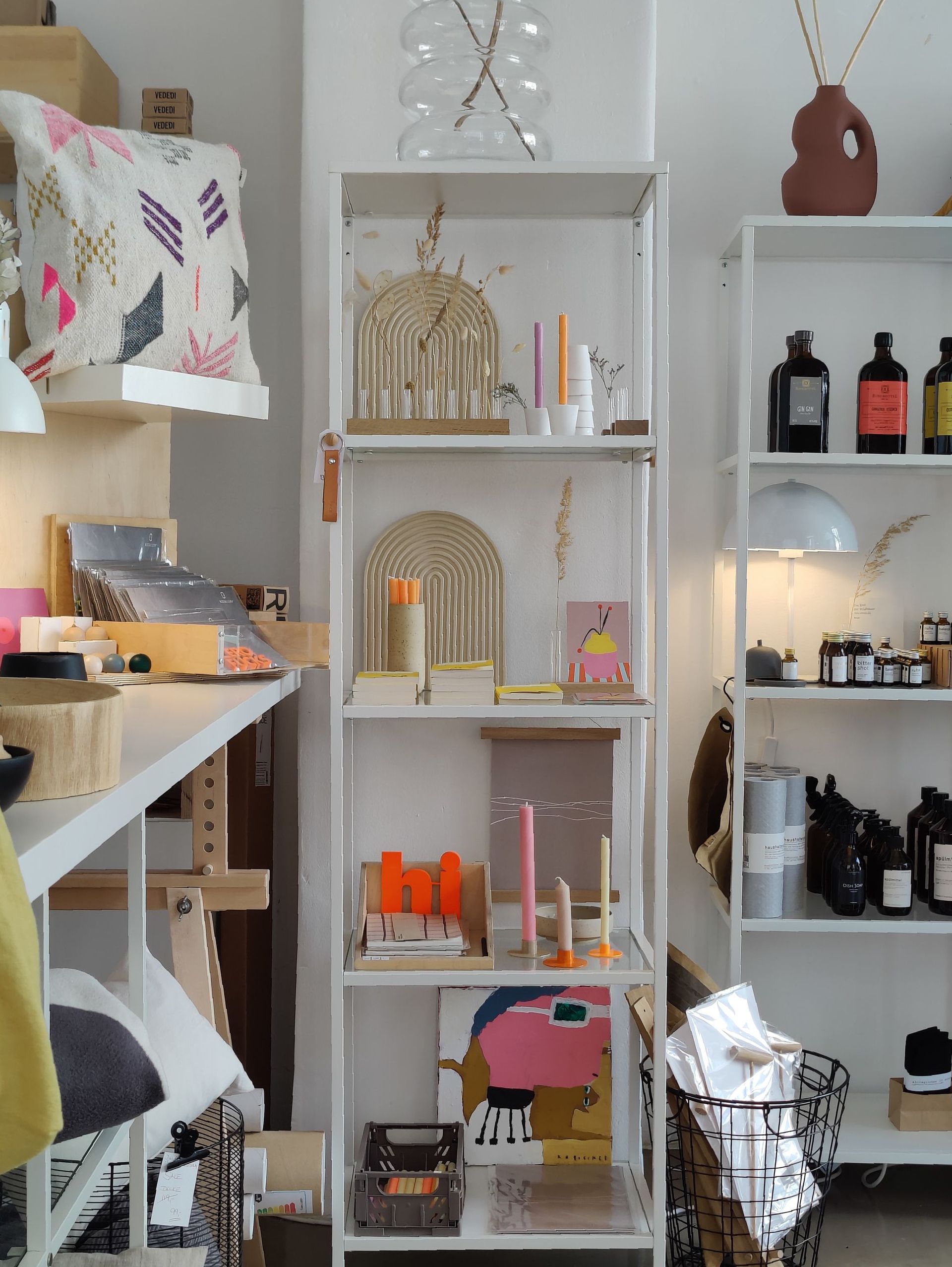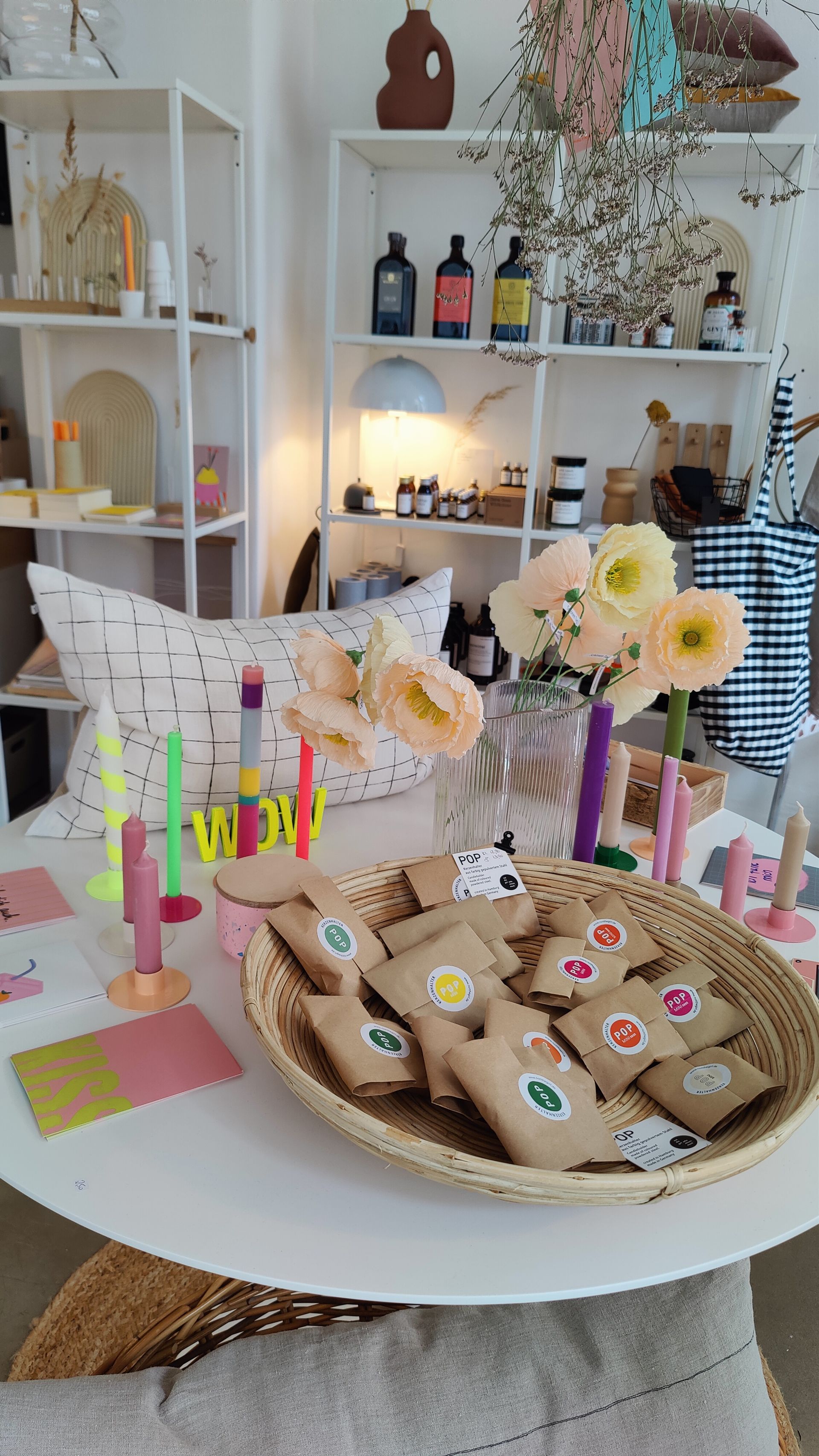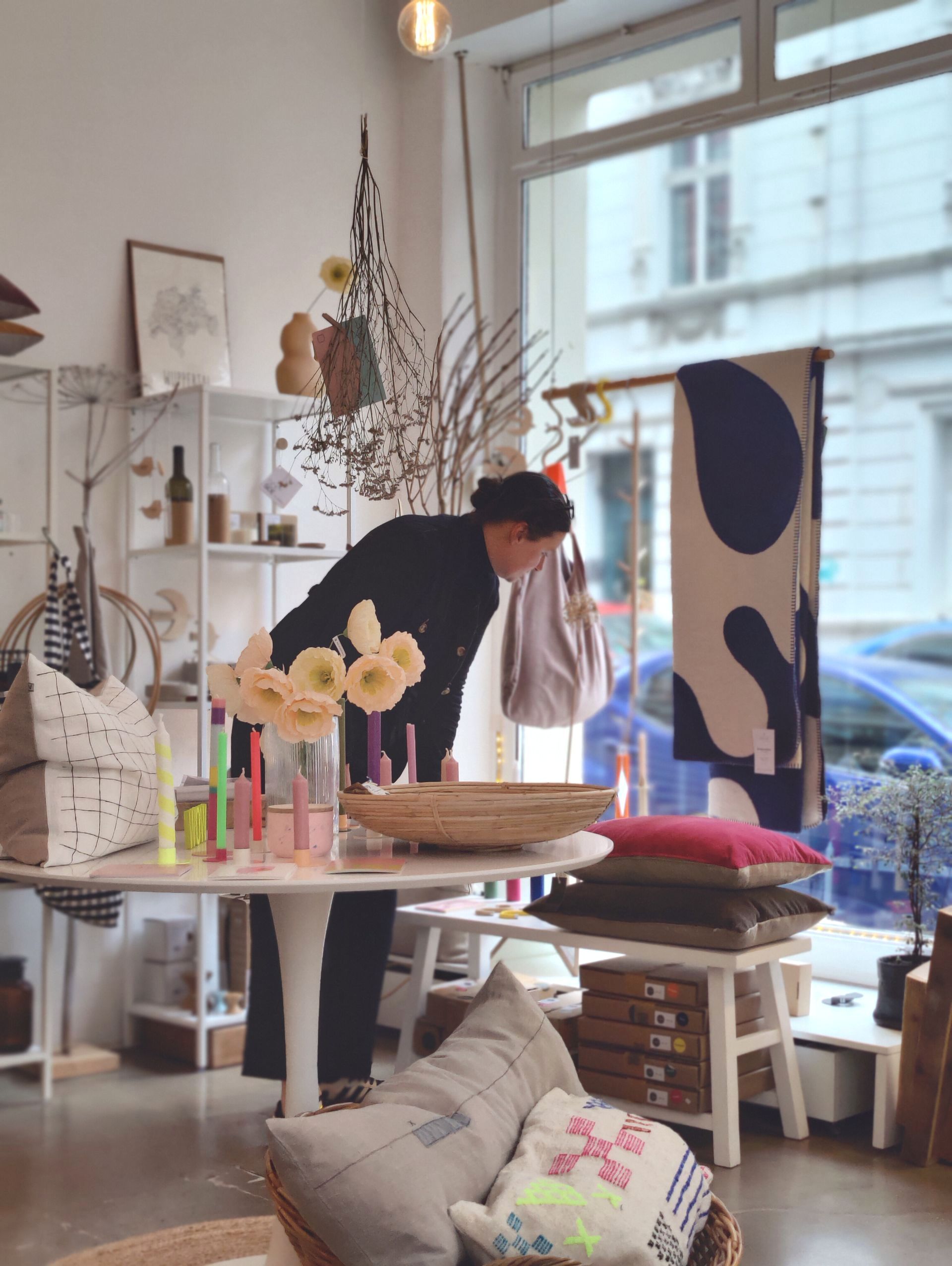 Durch meine Leidenschaft fürs Wohnen und Design, ist der Wunsch einen Laden zu eröffnen immer größer geworden. Als dann ein superschönes kleines Ladenlokal frei wurde, habe ich einfach zugeschlagen. Eigentlich suchte ich zu diesem Zeitpunkt ein Atelier mit Lagermöglichkeit. Ein Concept-Store ist es geworden, weil ‚Wohnen‘ ein weites Feld ist und es im Kern ja ums Wohlfühlen geht, daher gibt es auch mal etwas gutes zum Trinken oder auch Alltagsgegenstände in schön, wie z.B. Putzmittel, aber auch Geschenke.